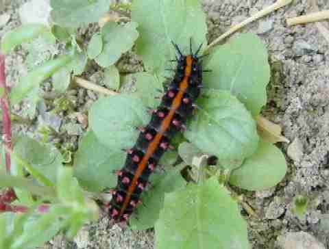 種を撒いてもらおうと残していた枯れかかったパンジー その中にこんな芋虫を発見 殺してしまおうかと思ったけど、正体を知っていたので旅立ちまで残しました |