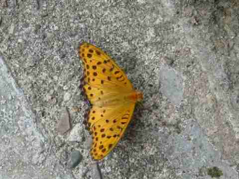 8月1日、すぐ横で羽化した雄と思うヒョウモンチョウ 写真を撮る間もなく飛び立ちましたが、 翌日庭で仕事をしていた私のそばにご挨拶に来てくれました この蝶は本当に人なっつっこいチョウです |
