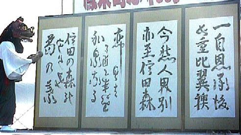 2000/11/05 鳳来町ふれあいフェスティバルで、「名越の神楽」を、その中でも有名な、「くずの葉子別れ」みることができました。