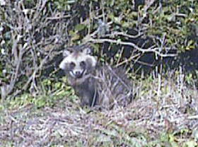 タヌキがでるのは、最近では珍しい。 こんなのが近くに住んでいると、かわいくていいけど、フン公害があって困るんだよね。 |